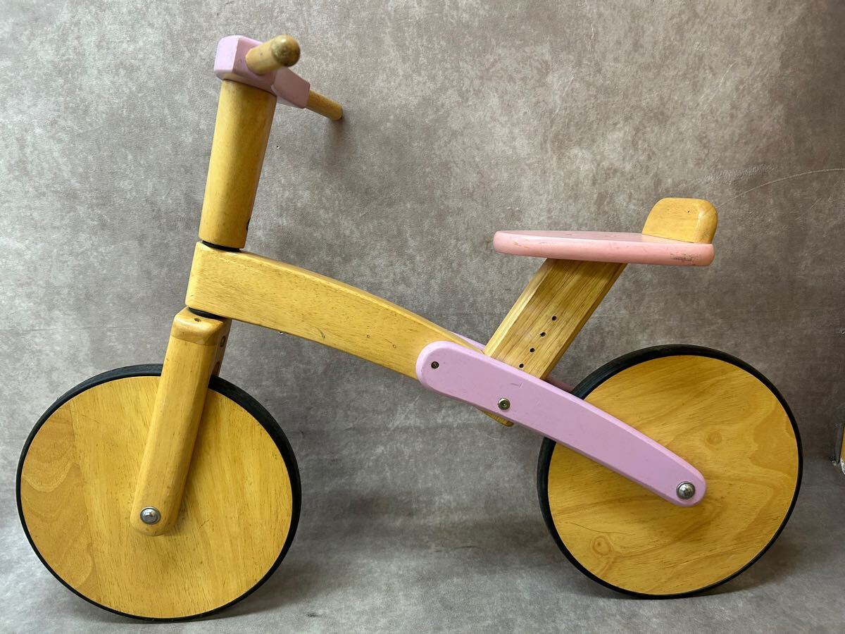 - 木製 自転車 子供用 キッズ 高さ約60cm バランスバイク ピンク オブジェ 飾り 店舗什器 インテリア 可愛い 奈良発 直接引き取り可
