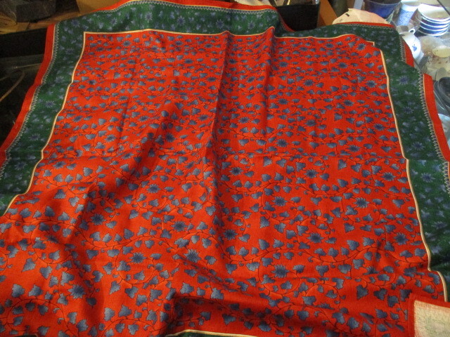 - □未使用保管品 源右衛門窯/源コレクション 蔦唐草紋 麻100% 100cm×100cm 正方形 ブルーミング中西 □