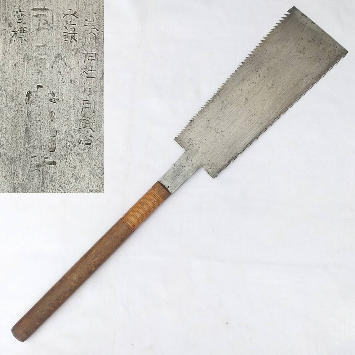 - 両刃鋸 湊川神社御用鍛冶 カネ平 宮野平次郎 守口 大西 刃渡約270㎜ 9寸 古鋸 のこぎり ノコギリ 大工道具 工具 日本製 【3162】