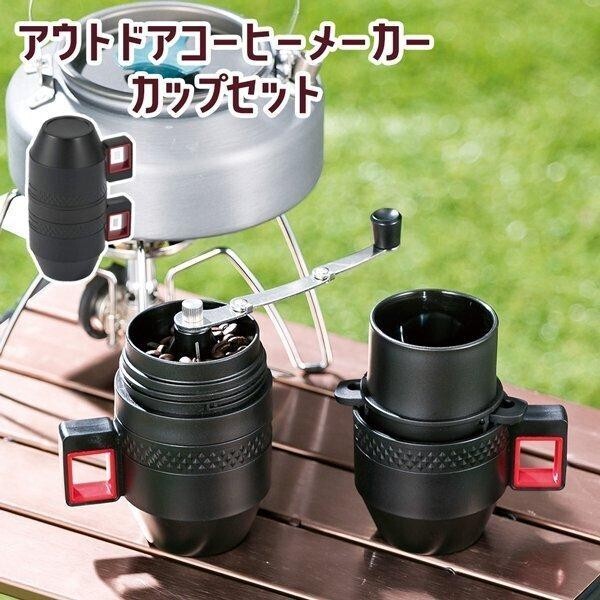 - コーヒー メーカー アウトドア セット 手動式 ミル ドリッパー マグカップ 2個 コーヒー器具 コップ 粗挽き 細挽き調節