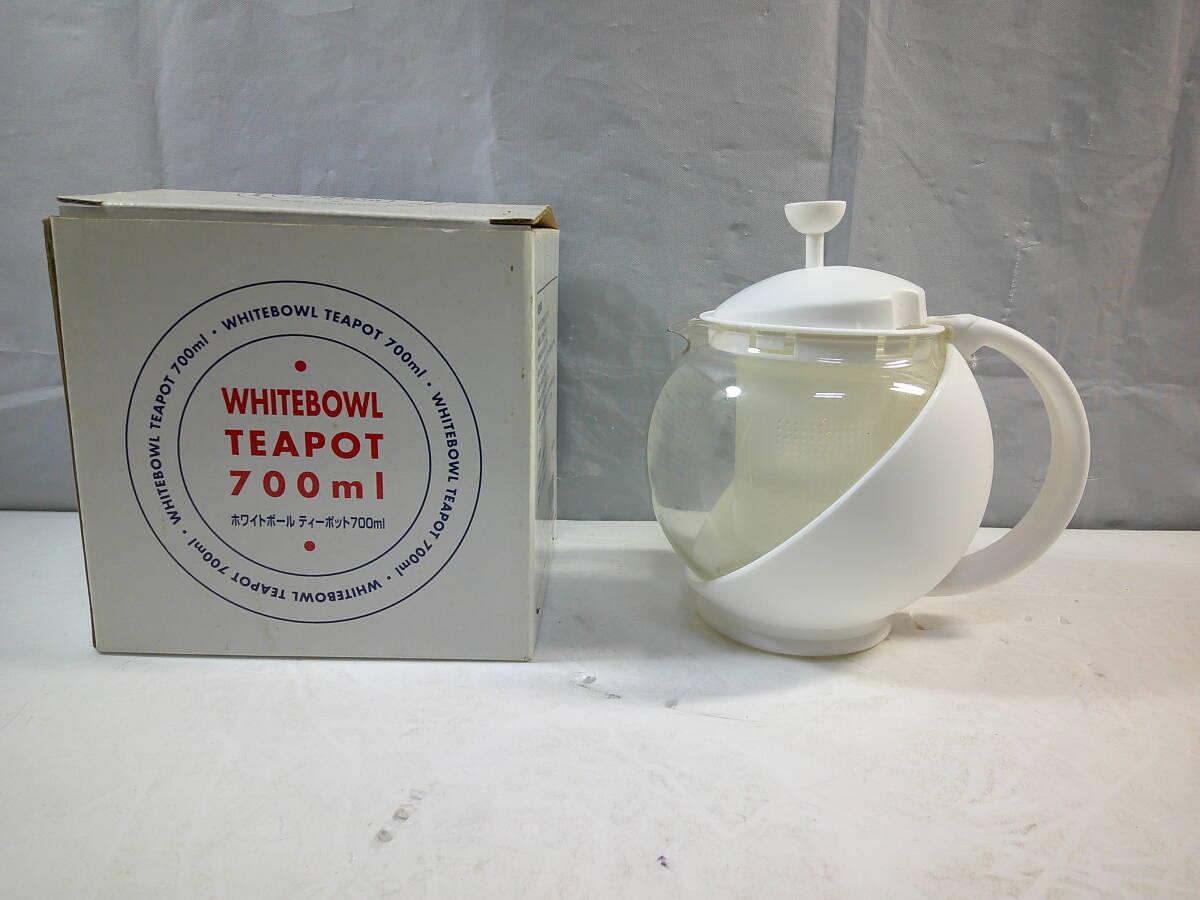 - ★未使用 ガラス ティーポット 700ml ホワイト 茶こし付 WHITEBOWL TEAPOT