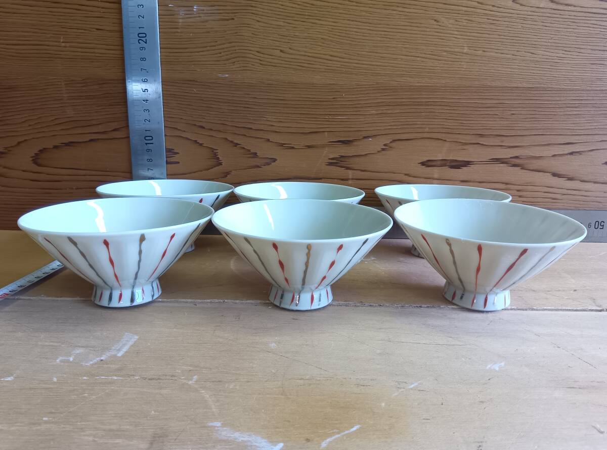 - 24102107 昭和レトロ食器 茶碗 6客 ごはん茶碗 和柄茶碗 ごはん茶碗 美品 未使用品