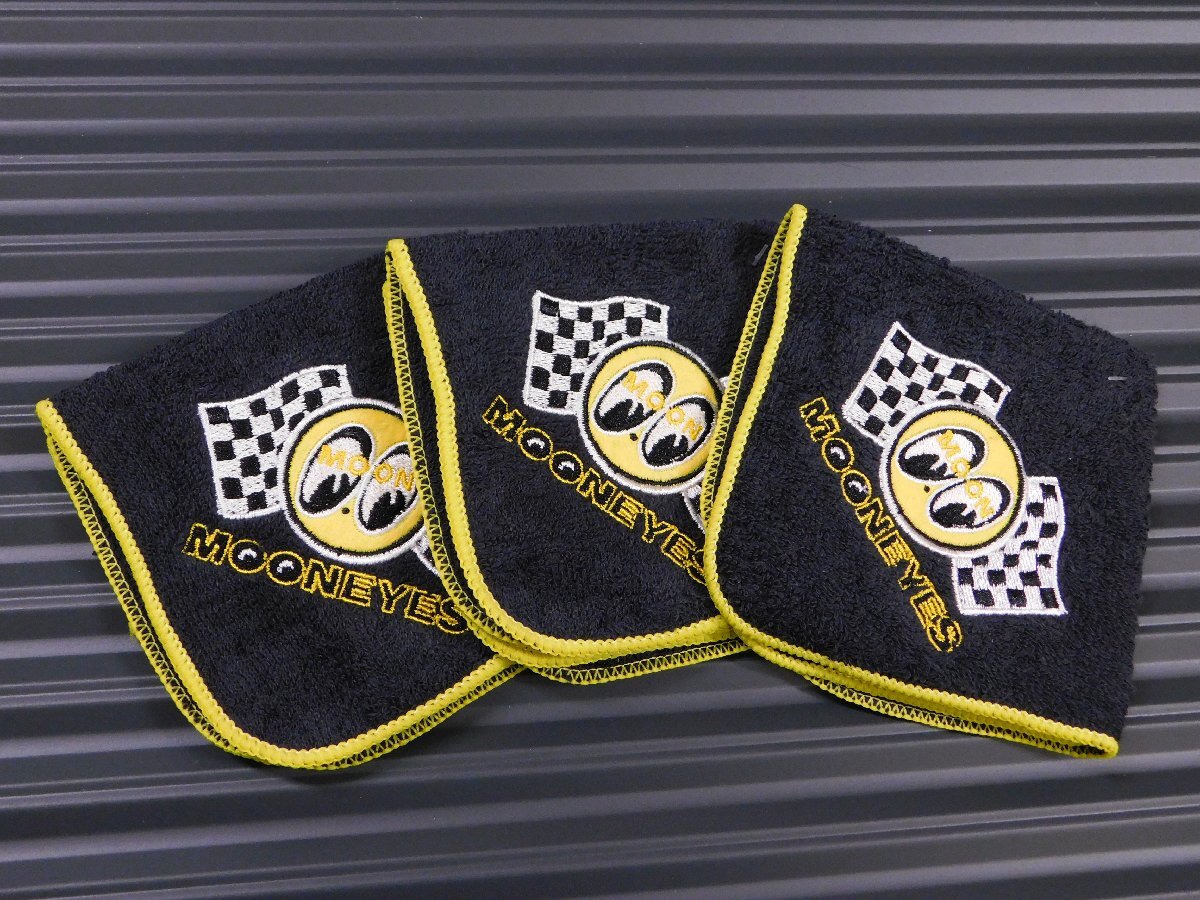 - ◆送料\185◆【MOONEYES・ムーンアイズ】※《チェッカーMOONミニタオル・3枚セット / ブラック》 MG991BK 刺繍 ハンドタオル アメリカ
