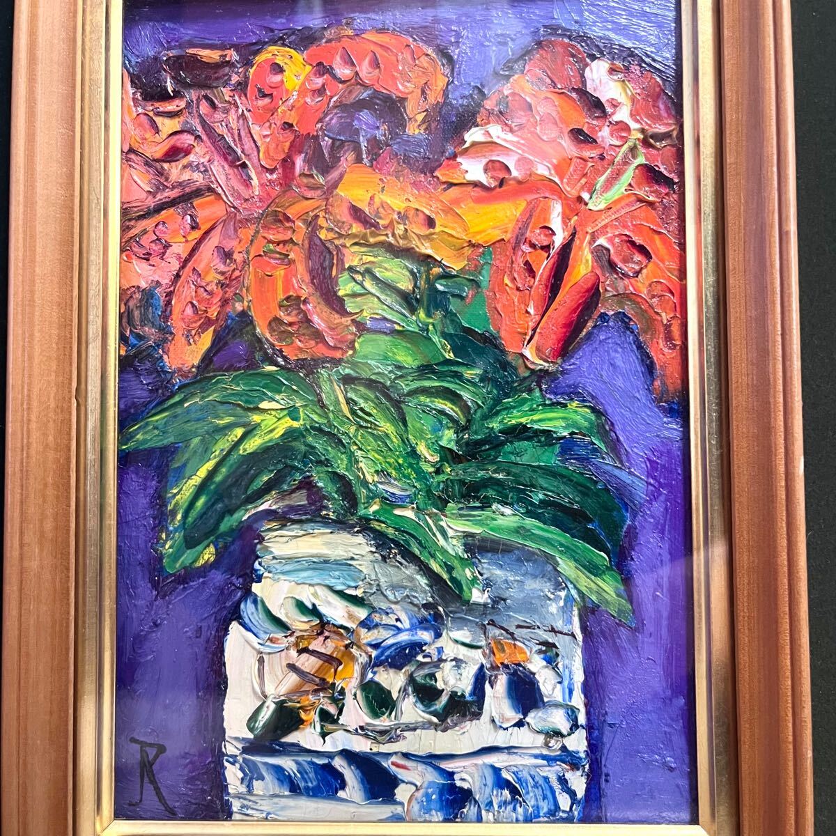 - ☆ 洋画家 中川力 『 百合 』 油彩 SM 額装 真作保証 三越購入品 紅百合