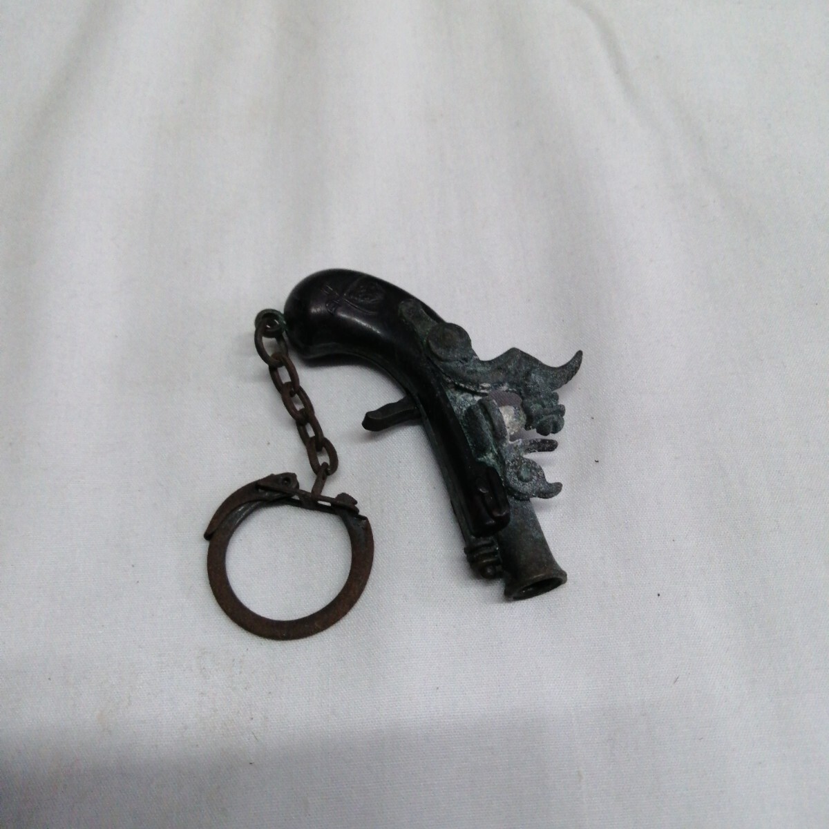 - 昭和レトロ ビンテージ 駄玩具 フリントロック キーホルダー ピストル 銃 キーホルダー スカル ドクロ 送料185円可能