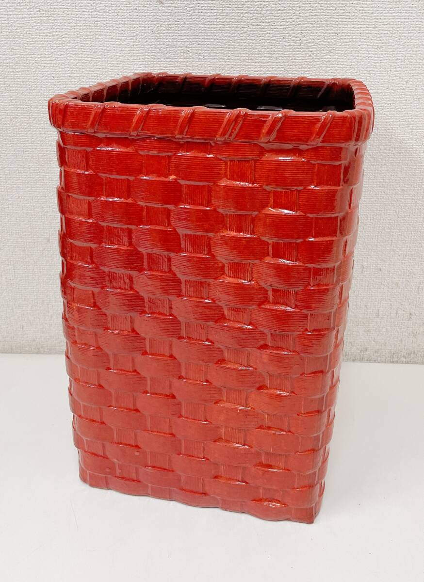 - 【近江一閑張 角筒籠「蛯」印あり】植木鉢/花瓶/花器/マガジンラック/くず籠/バスケット/柿渋/S610-243
