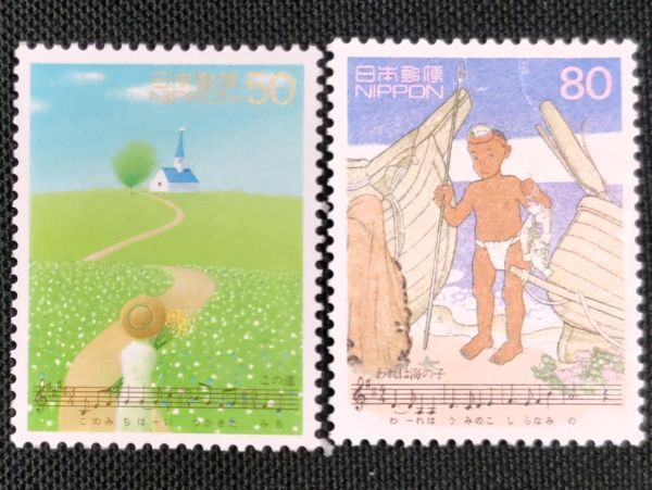 - [24102349]【わたしの愛唱歌・第6集】単片2種完「この道・われは海の子」50円+80円 1998年発行 私の愛唱歌