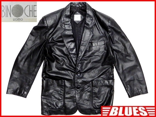 > 即決★BINOCHE★メンズM レザーテーラードジャケット ビノーチェ 黒 ブラック 本革 スーツ 本皮 ビジネス 革ジャン 背広 アウター
