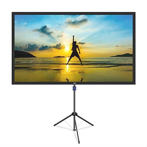 > ● 改良新版 4K対応 プロジェクタースクリーン (ガラス繊維材料) 自立式 携帯型 三脚式 屋内屋外兼用 最大100型 16:9 視野角160°
