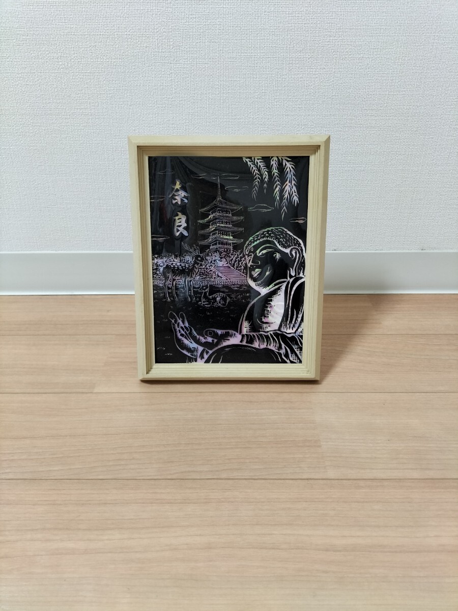 - 木目調プラスチックフレーム お土産 奈良 インテリア雑貨 額縁 奈良の大仏や鹿 立てかけるタイプ