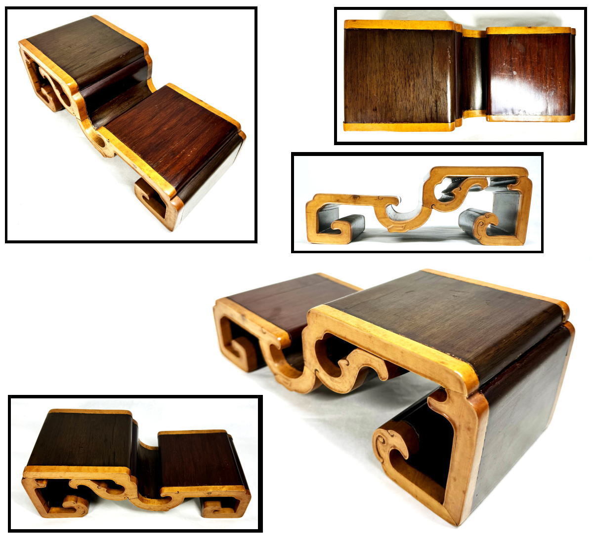 > 【送料無料】紫檀黄楊木花台 華道 茶道 唐木 香炉台 飾台 唐物 盆栽台 時代物 唐物 骨董 中国古玩 古美術 細密細工 (旧家蔵出し) WWWT075