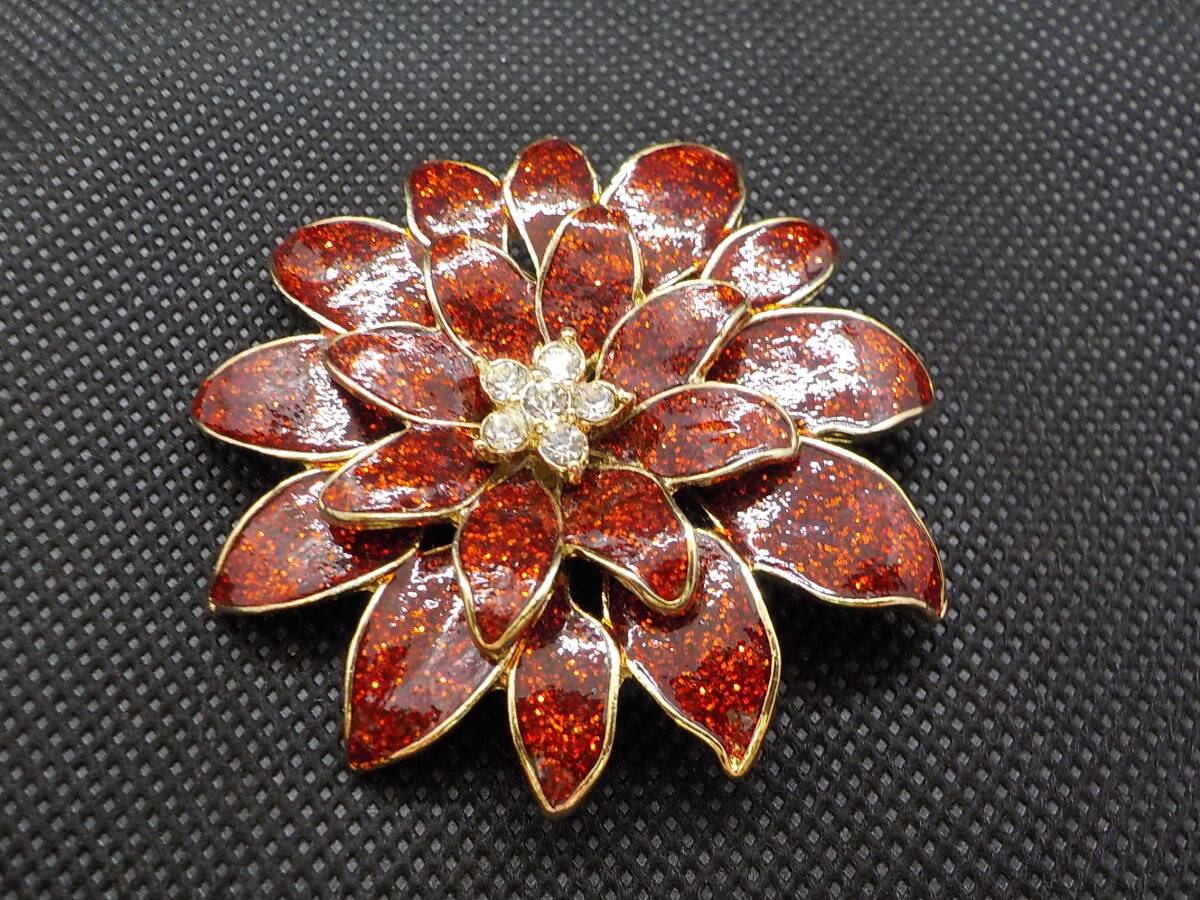 > ★ビンテージ★花★ポインセチア★POINSETTIA★ブローチ★ショウジョウボク★猩猩木★赤★レッド★RED★flour★トウダイグサ