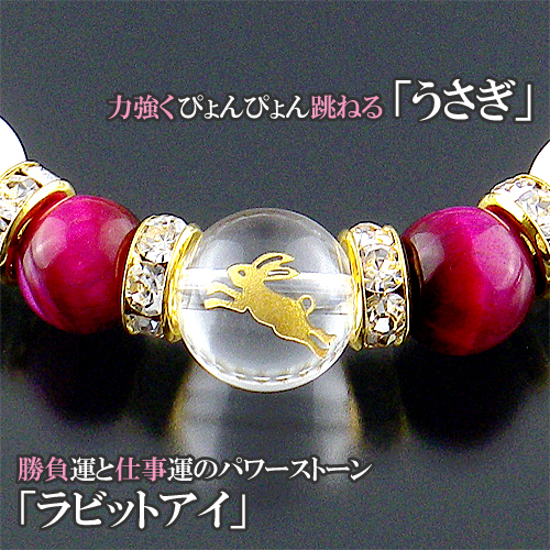 > ★パワーストーン★インスタ映え★ウサギ/うさぎ/兎★大人可愛い★勝負運/仕事運★ブレスレット★白水晶&ラビットアイ&ホワイトオニキス&他