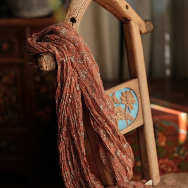 - lgn 24110 天然素材 ストール 綿100% コットン 花柄 ゆったり アンティーク風 織り込み柄 オレンジ色