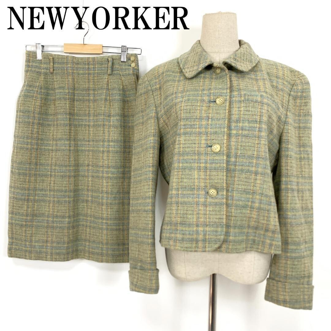 - LA3675 ニューヨーカー チェック スカートセットアップ グリーン NEWYORKER ジャケット11 スカート13 カジュアル イベントセレモニー 11