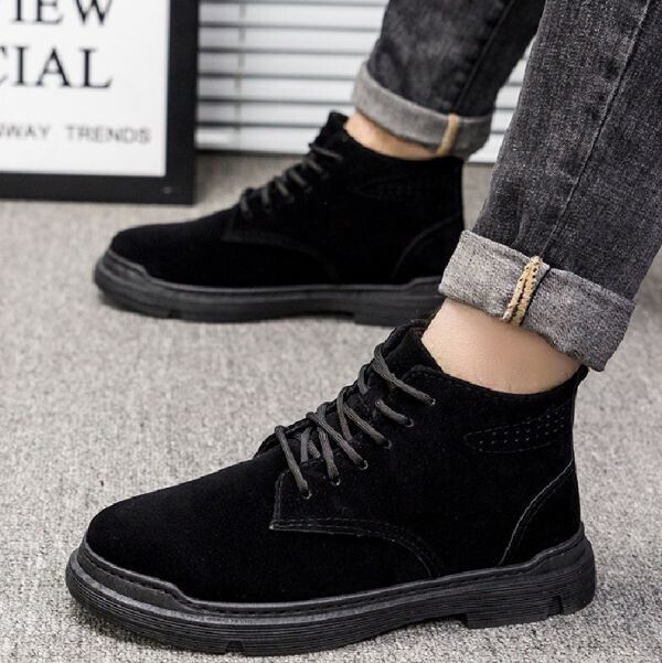 - 靴 【27cm】 【 s54 黒 】メンズ ブーツ レースアップ スエード風 シューズ ショートブーツ スニーカー オシャレ カジュアル ブラック