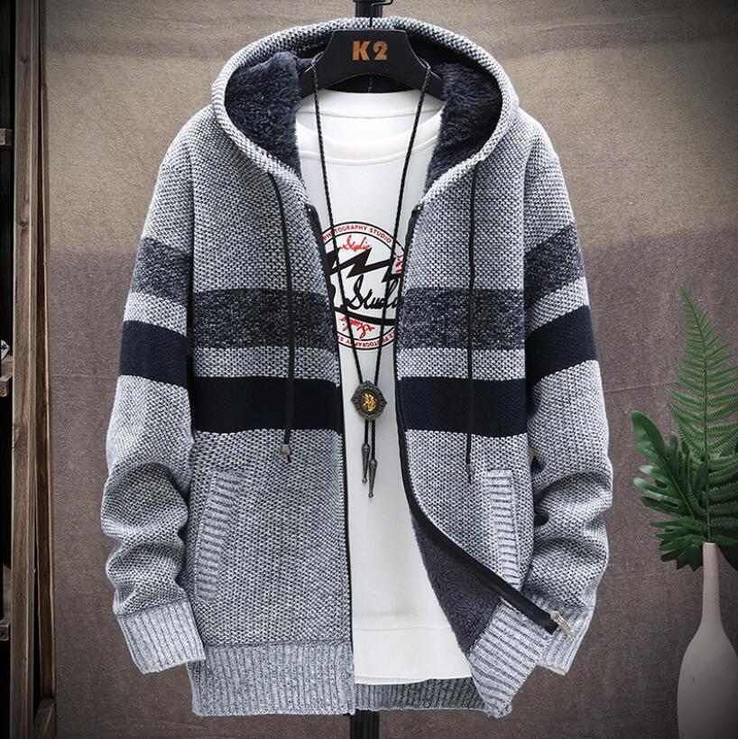- 秋冬 / メンズ カーディガン ニット 裏起毛 防寒 厚地 ロングコート フード付き ニットジャケット 暖かい メンズ ジャケット /ライトグレー