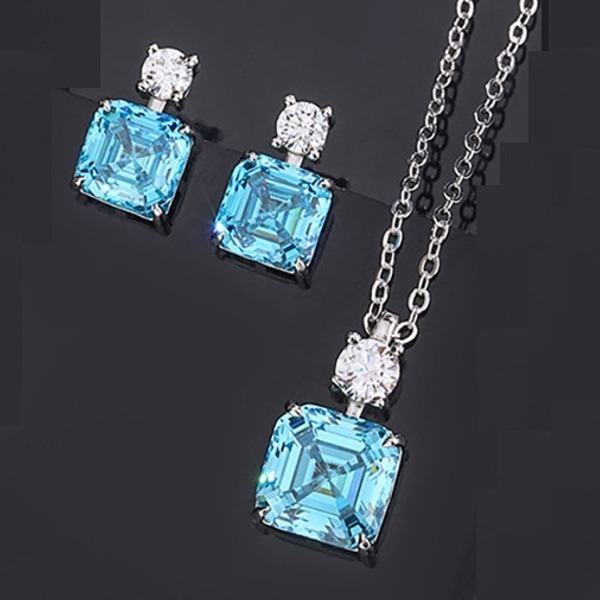 女性用アクアマリンジュエリーセット (ペンダント付きネックレス、ピアス)、ウェディングチャーム,10x10mm