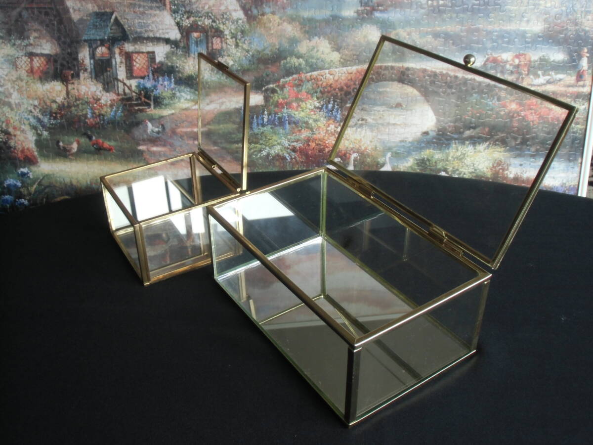 - オシャレ コレクションケース アクセサリー入れ デスプレイケース ガラスミラー底 金色枠 2個セット