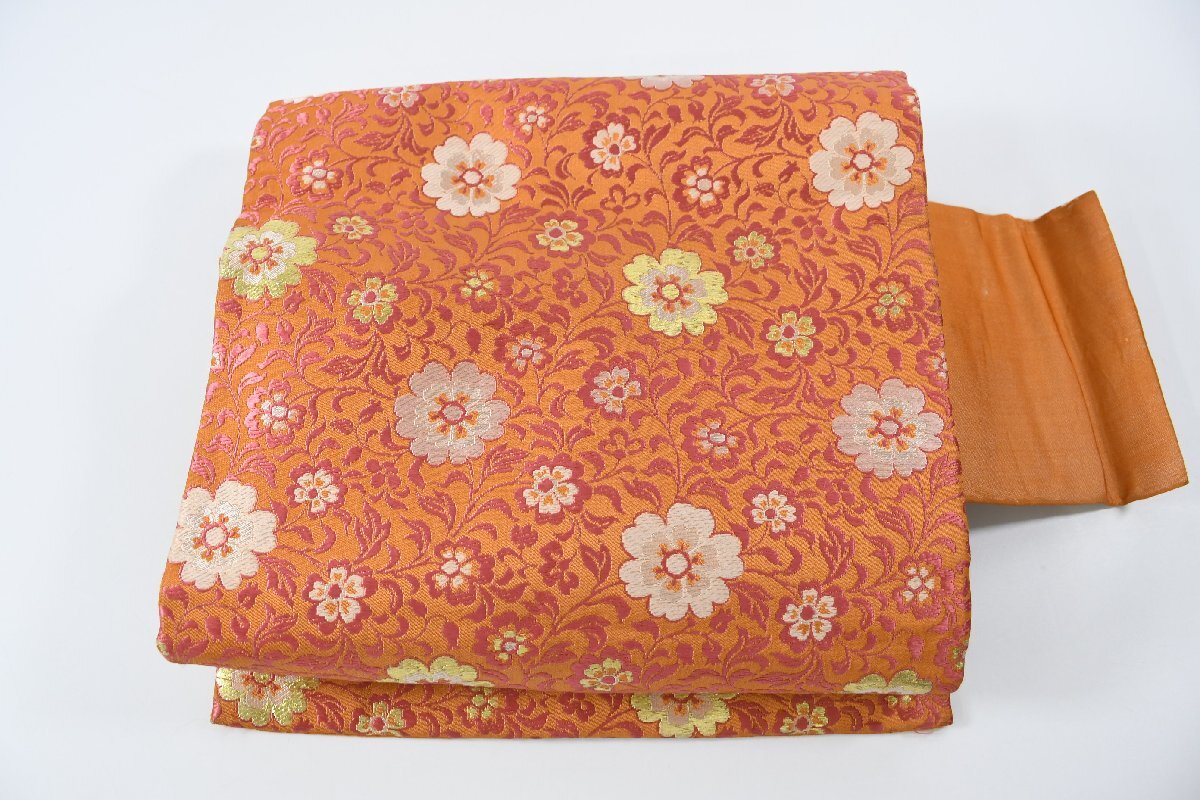- 名古屋帯 アンティーク 花 帯丈338cm ★着物屋 ne-12423 桜庭呉服店