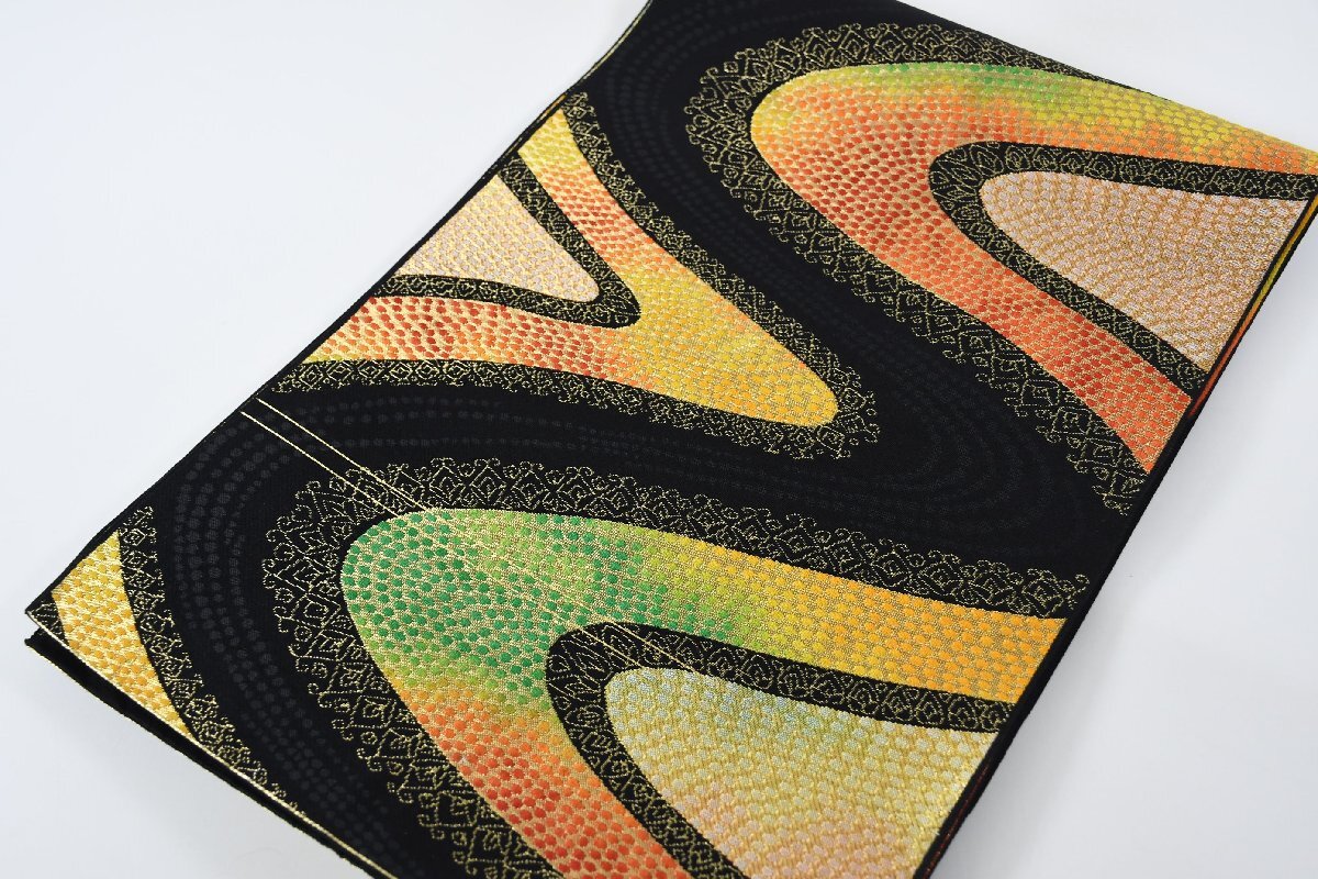 > 袋名古屋帯 六通柄 流水 黒 帯丈352cm ★着物屋 ne-12524 桜庭呉服店