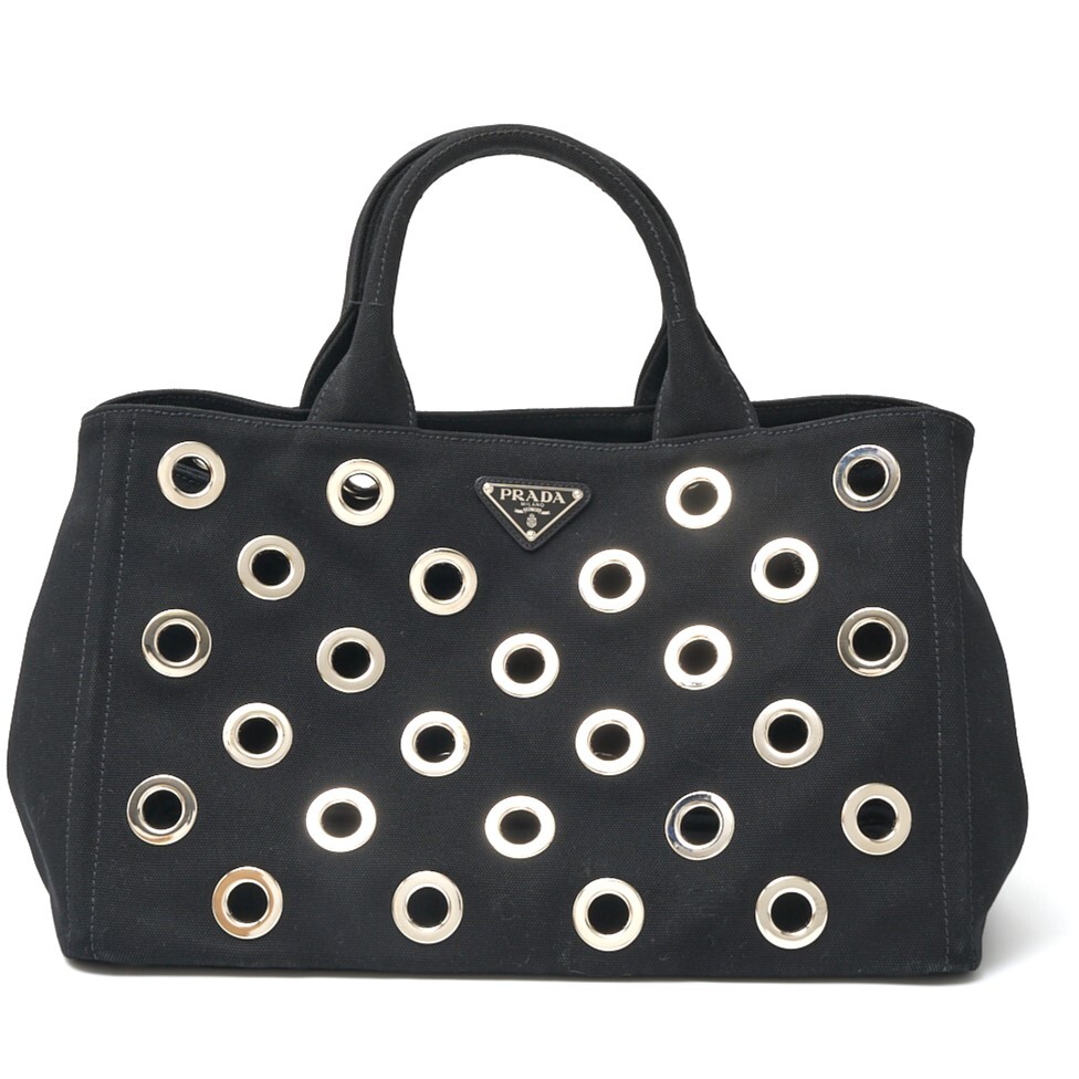 > PRADA プラダ カナパ グロメット 1BG642 2WAY ハンド ショルダーバッグ キャンバス ブラック×シルバー金具 カジュアル レディース