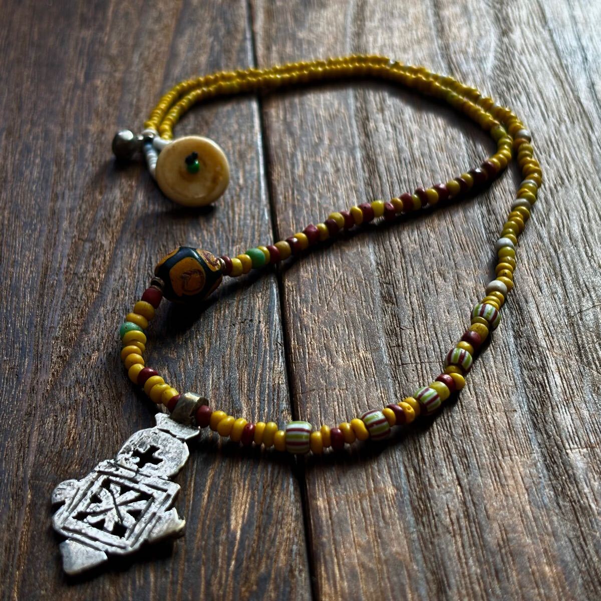 - 出土 古代ビーズ ヴェネチアン アンティークビーズ ネックレス 3連ブレス インドパシフィック キングビーズ カンネッテ エチオピアンクロス