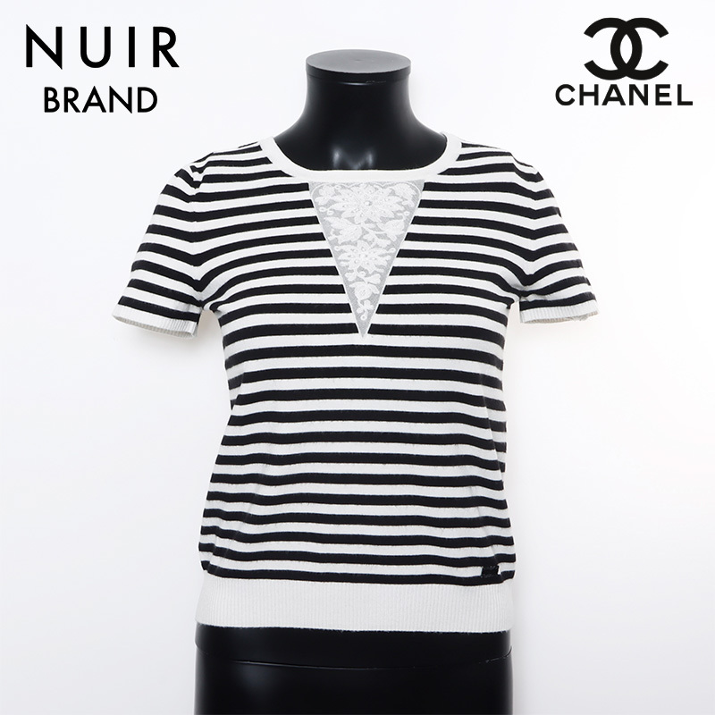 - シャネル CHANEL ニット 05P ボーダー 半袖シャツ Size:38 ブラック ホワイト