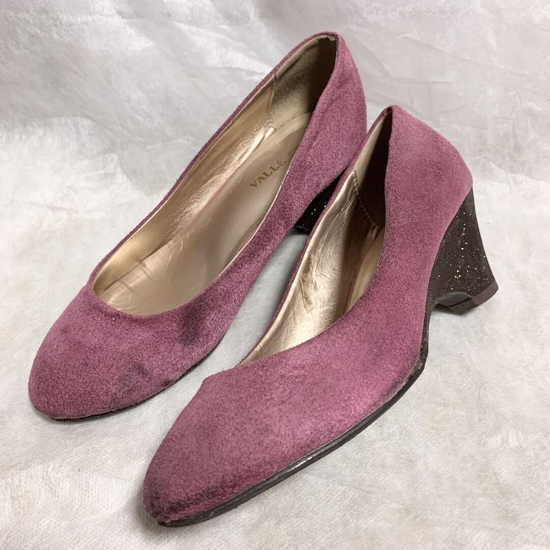 > スエード風グリッターヒールウェッジソールパンプス 22.0 ピンクパープル 起毛 ピーチスキン スウェード ウェッジヒール ピンク紫