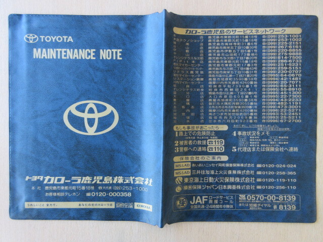 - ★01501★トヨタ 純正 カローラ 鹿児島 TOYOTA 取扱説明書 記録簿 車検証 ケース 取扱説明書入 車検証入★訳有★