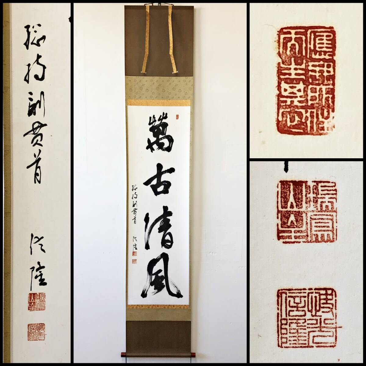- 【真作】W257【 梅田信隆 曹洞宗総持寺独住21世貫首 四字一行書『萬古清風』】掛軸/墨蹟/紙本/再表具