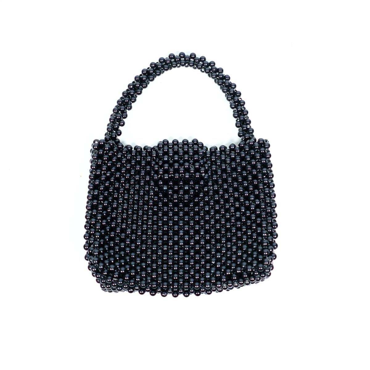 - 1970s ビンテージ ブラックビーズハンドバッグ ハンドメイド 古着屋 黒 玉 デザイン アート ヴィンテージ レア