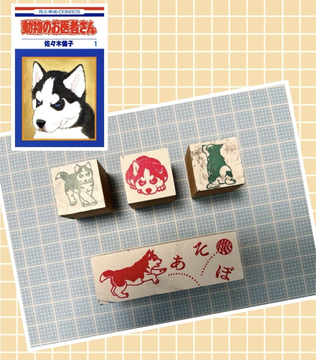 - 動物のお医者さん スタンプセット ハンコ レア 佐々木倫子 白泉社文庫 4個セット チョビ シベリアンハスキー 花とゆめ 昭和