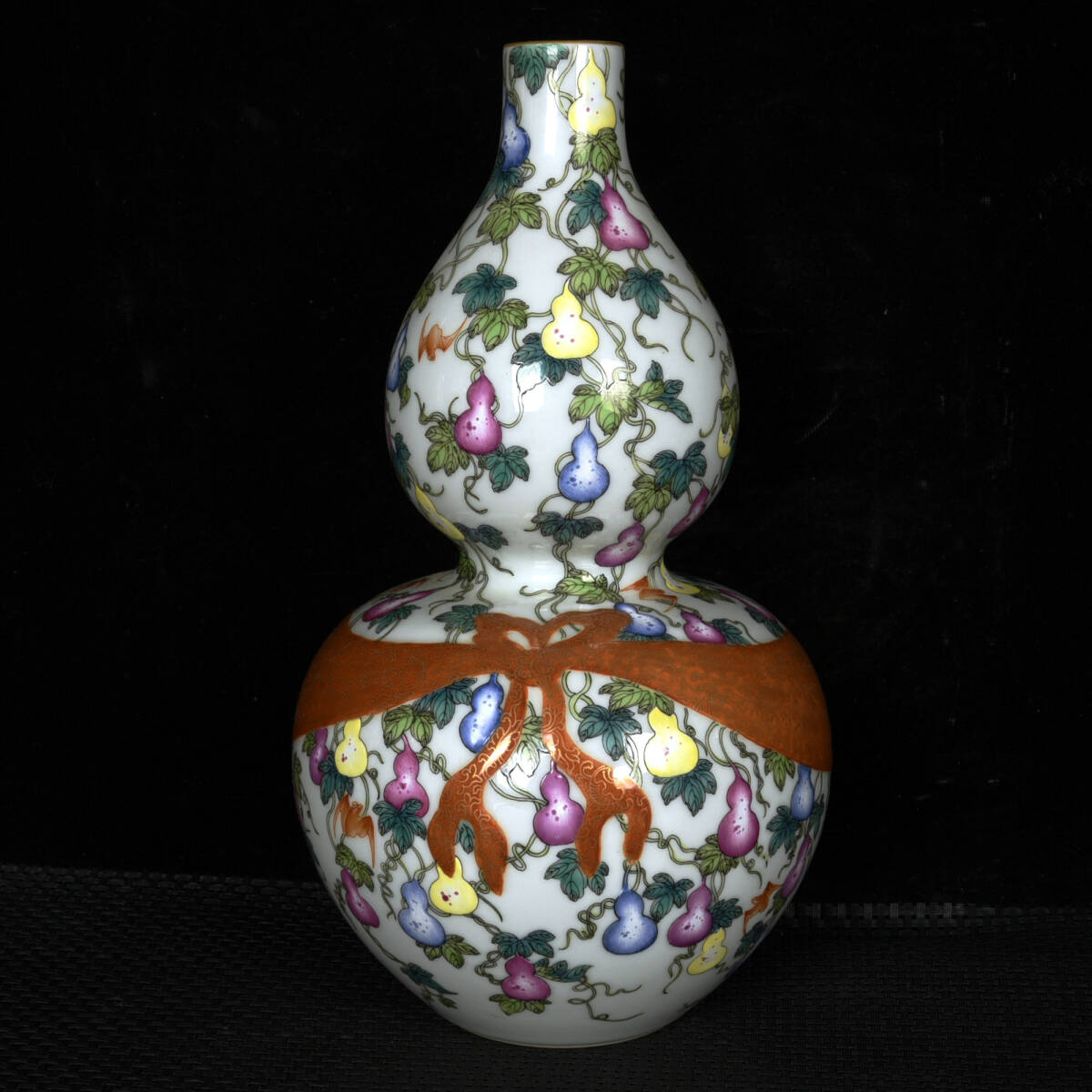 - ◆蔵出◆古美術 中国古玩 大清乾隆年製款 斗彩 描金 浮雕 葫芦紋葫芦瓶 時代物 T16