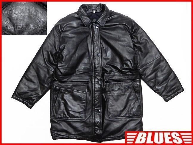> 即決★Jsr101sq★メンズM レザーコート 黒 ブラック 本革 アウター 本皮 ダウンコート 革ジャン ロング ステンカラーコート キルティング