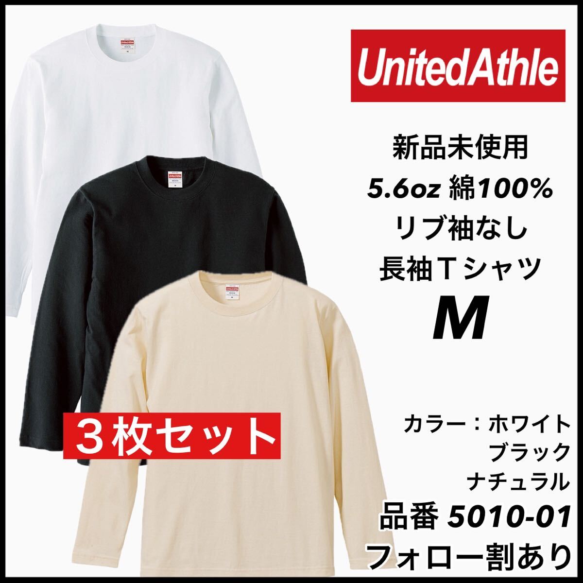 - 新品未使用 ユナイテッドアスレ United Athle 5.6oz 無地 袖リブなし 長袖Tシャツ ロンT 白黒ナチュラル3枚セット Mサイズ ユニセックス
