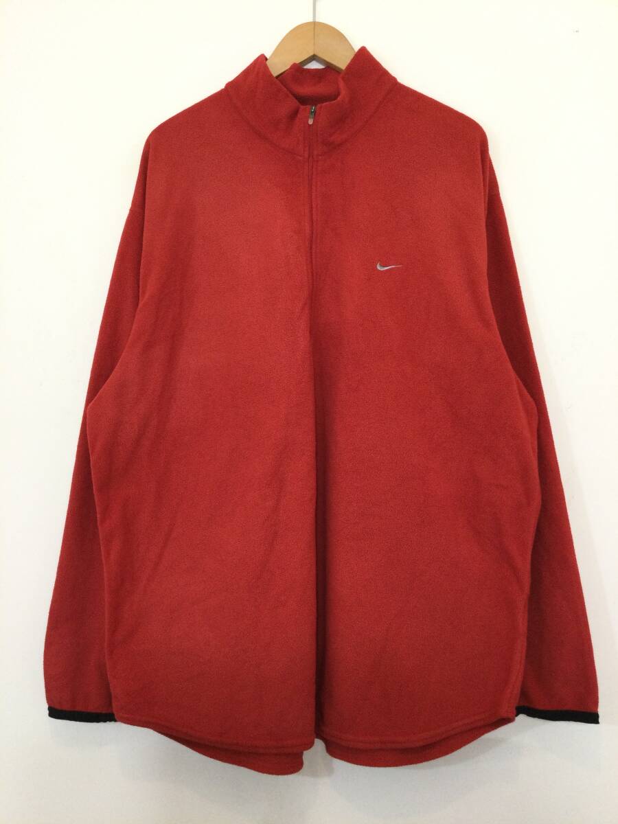 > NIKE ナイキ 胸元ワンポイント 刺繍ロゴ スウォッシュロゴ ハーフジップ フリース フリースジャケット メンズXL 大きめ【良品綺麗】