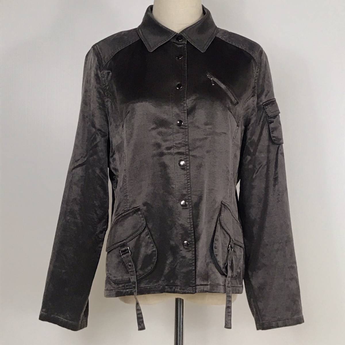 > YZ0499 ROSASE CLUB レディース トップス ジャケット 長袖 肩パッド Lサイズ ブラウン 茶 無地 伸縮性なし エレガント キュプラ50%
