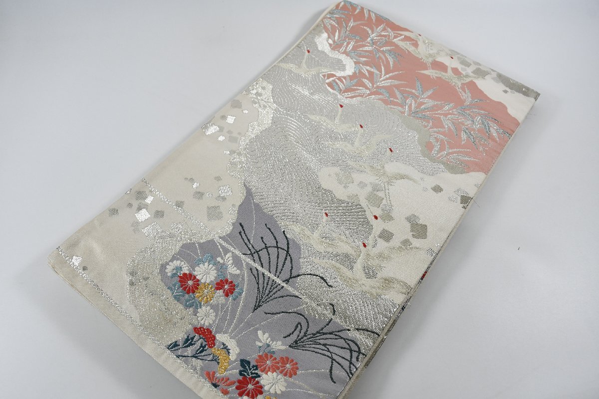 - 袋帯 六通柄 舞鶴 秋草 花 帯丈428cm ★着物屋 ne-12783 桜庭呉服店