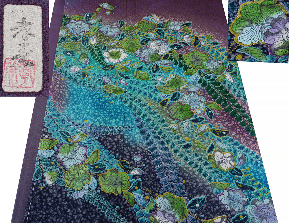 - 【京かんざし】b-366★作家物 落款有 辻が花訪問着 紋付 躾糸付未着用身丈159 cm裄丈65.5 cm★即決送料無料!