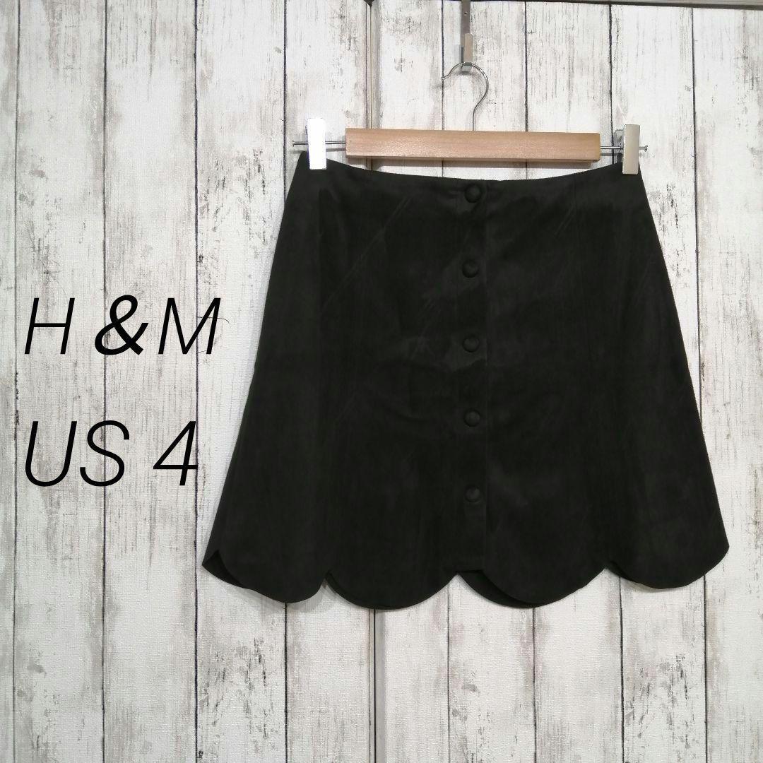 - H&M エイチアンドエム フロントボタン ミニスカート レザー調 ブラック 35