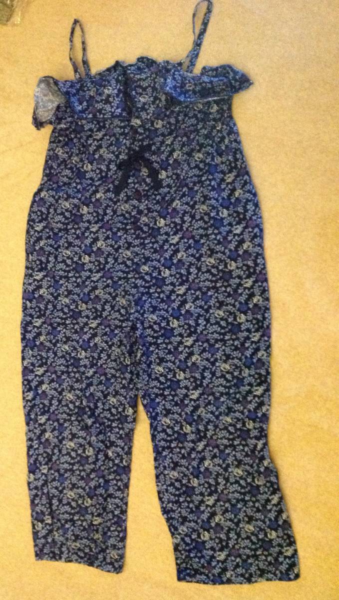 - 中古美品 Petit Main 120cm ブルー花柄 パンツ オーバーオール