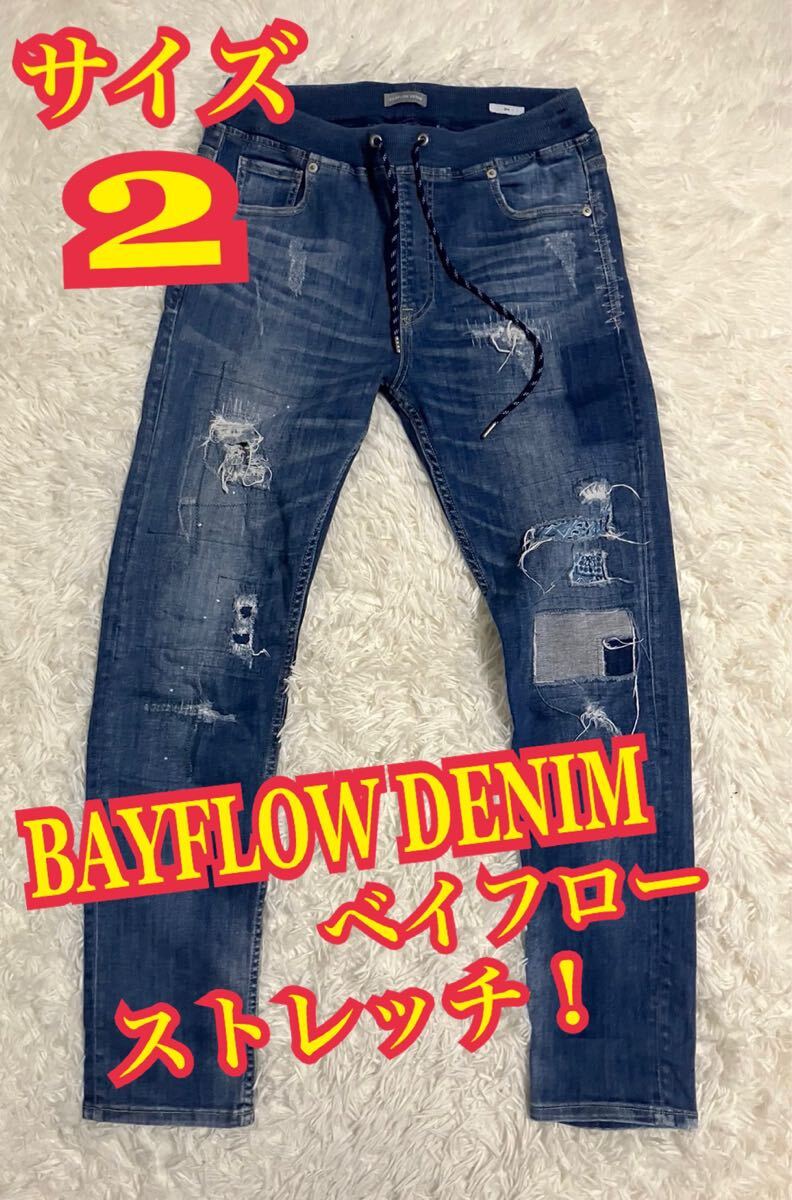 - BAYFLOW DENIM ベイフロー デニム ジーンズ ストレッチ ダメージ リペア加工 サイズ2