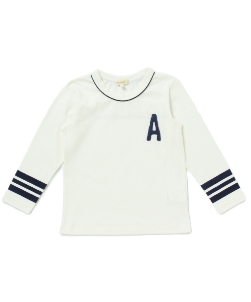 > 新品 HusHusH イニシャル入りプレッピー長袖Tシャツ オフホワイト 14(140cm) 定価1430円