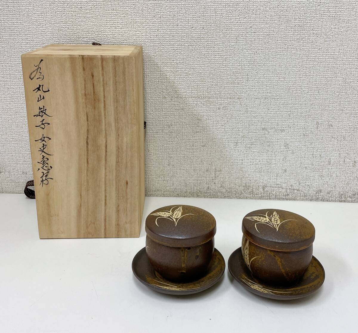 > 【~伊羅保 麦紋 茶器~】銘有/共箱入/刻印有/茶道具/全長約6.5cm/コレクション/k611-108
