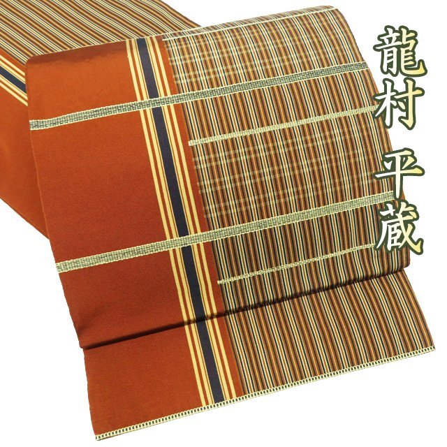 > 特選 袋帯 未使用 正絹 カジュアル 仕立て上がり 六通 高島屋扱い 龍村平蔵 弥左衛門間道 木箱入り 赤茶色 多色 きもの北條 A1113-22