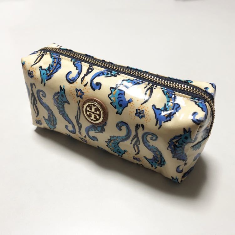 - $ 美品 $◆ トリーバーチ ◆ TORY BURCH◆ タツノオトシゴ 総柄◆ ビニールコーティング・化粧ポーチ 小物入れ ペンケース◆ミルクティー色