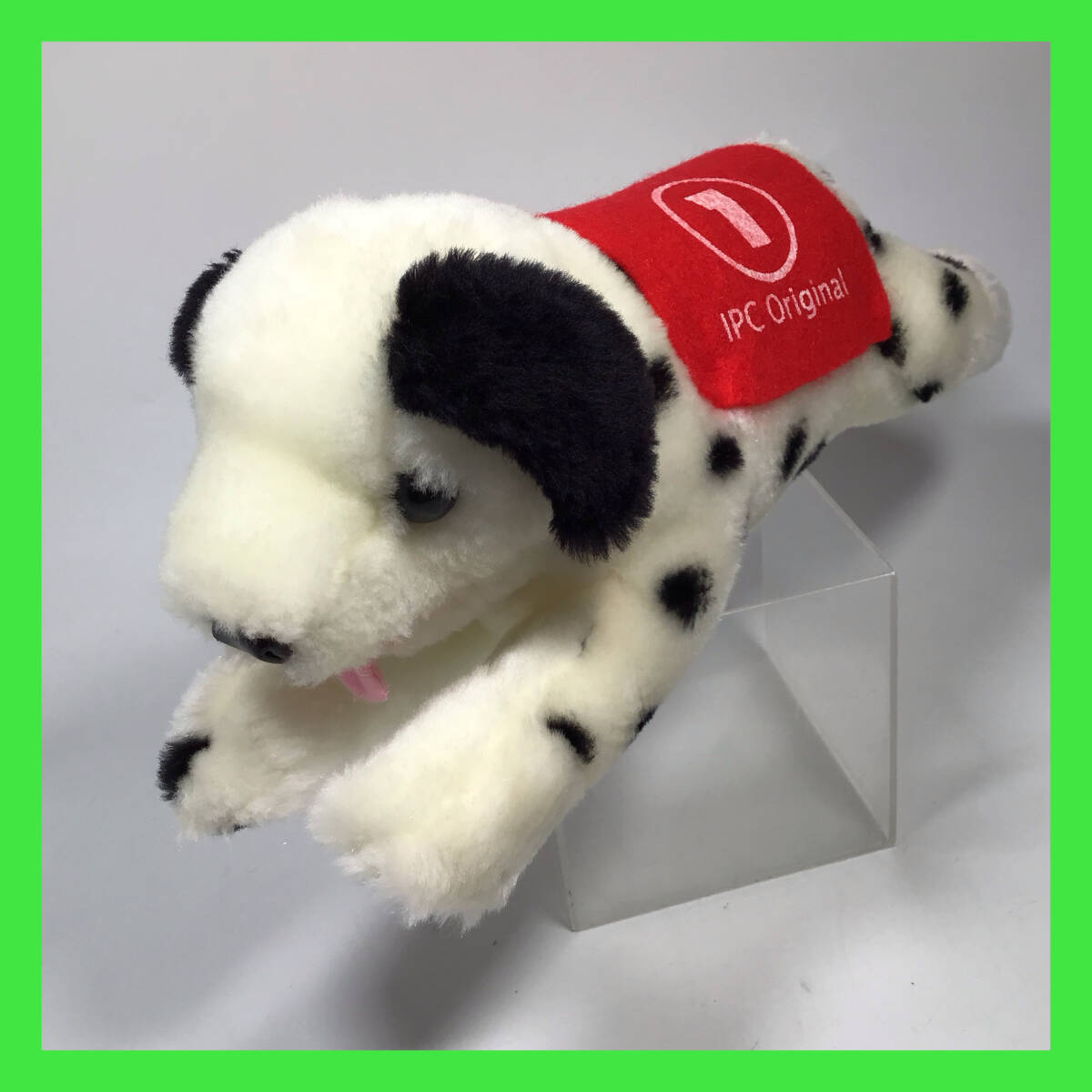 - N-1337 ☆ 赤いゼッケンをつけた白黒の犬 ダルメシアン風 うつぶせ