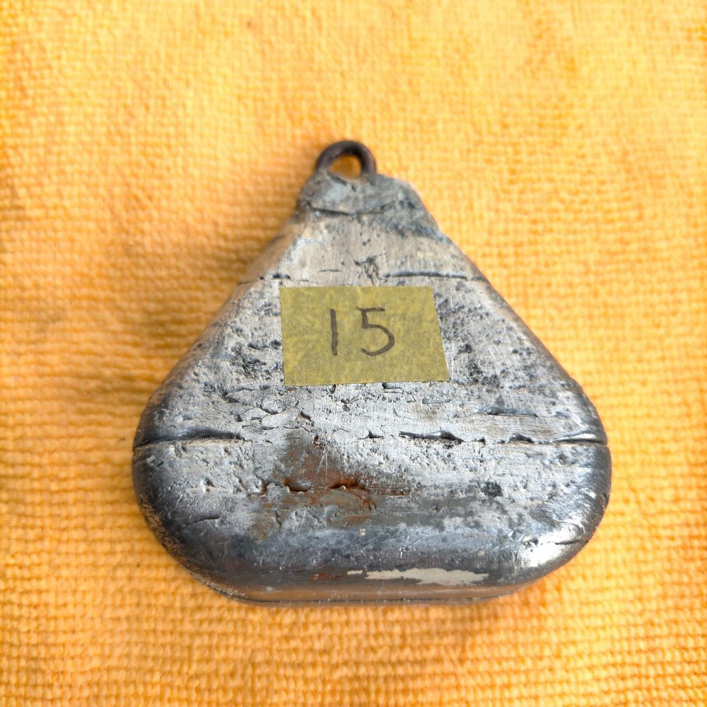 - ⑮ 刺し網 かん付き 特殊 おもり 錘 オモリ なまり 鉛 なまりおもり 鉛錘 夜川漁 鮎 投網 手作り 岐阜発
