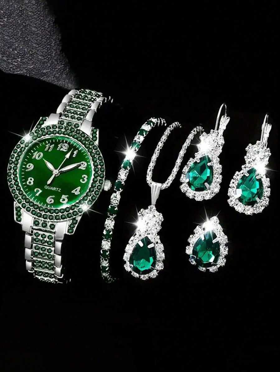 - 腕時計 レディース セット ファッショナブルな婦人用腕時計セット 6個入り、緑色ダイアル クォーツ ムーブメント - ジンク合金ケ